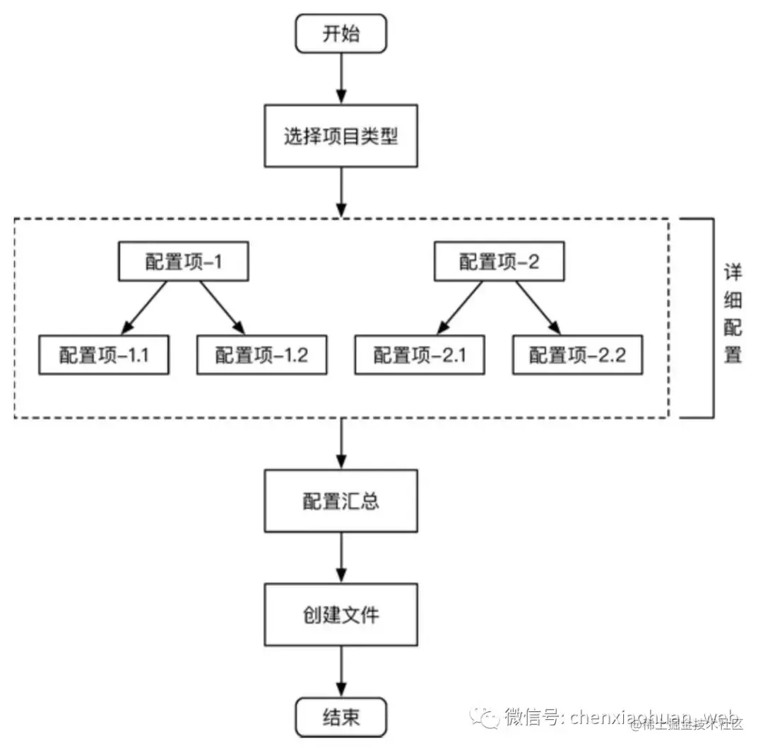 整个流程可以简单归纳为:选定方案、配置方案细节、配置完成、根据定制方案创建项目文件、结束流程。