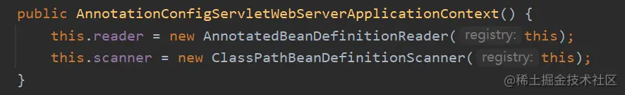 在 AnnotationConfigServletWebServerApplicationContext 的无参构造方法中, 调用了如下两个方法: