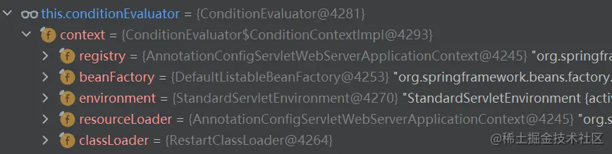 创建了这两个对象后, 然后创建ConditionEvaluator对象, ConditionEvaluator 是@Conditional注解的条件评估器, 评估是否满足条件.
