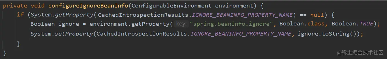 就是获取了 spring.beaninfo.ignore 参数, 如果没有该参数, 默认设置为 true, 具体作用未知.