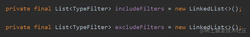 这些过滤规则存放在includeFilters属性中, 该属性是在其父类ClassPathScanningCandidateComponentProvider中定义的.