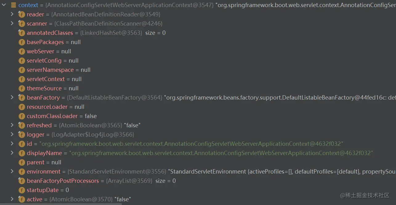 通过 debug 也能看到, 在创建 AnnotationConfigServletWebServerApplicationContext 时, 会依次向上调用其父类的构造方法, -> ServletWebServerApplicationContext -> GenericWebApplicationContext -> GenericApplicationContext -> AbstractApplicationContext.