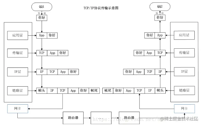用户有接入因特网的需求,这就要求用户的主机必须下hi用TCP/IP协议。在用户主机的操作系统中,通常都带有符合TCP/IP体系结构标准的TCP/IP协议族,而用于网络互连的路由器中,也带有符合TCP/IP体系结构标准的TCP/IP协议族,只不过路由器一般只包含网络接口层和网际层。