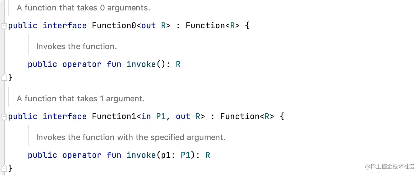 如果没有参数会编译成 Function0,一个参数编译成 Function1,以此类推。FunctionN 重载了操作符 invoke。如下图所示。