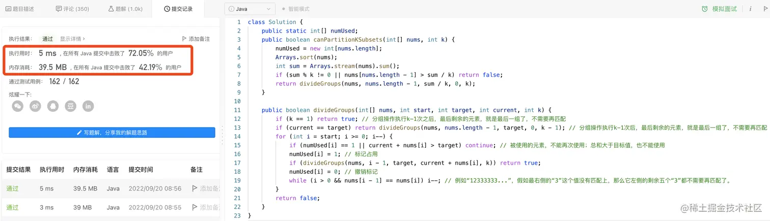public boolean canPartitionKSubsets(int[] nums, int k) {