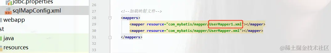 还需注意将sqlMapConfig.xml下加载UserMapper1.xml下