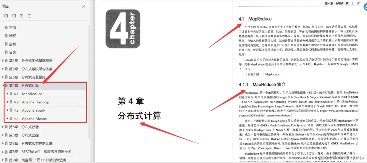 第4章介绍分布式计算理论和应用框架方面的内容,包括MapReduce. Apache Hadoop、Apache Spark、Apache Mesos等。
