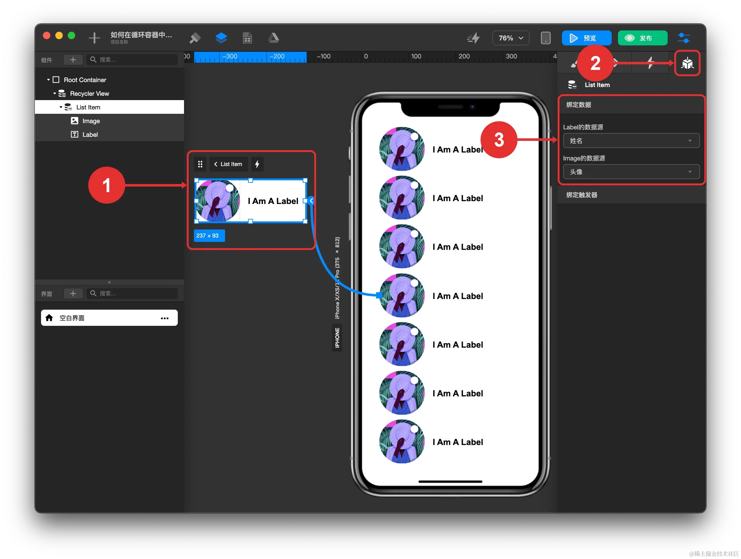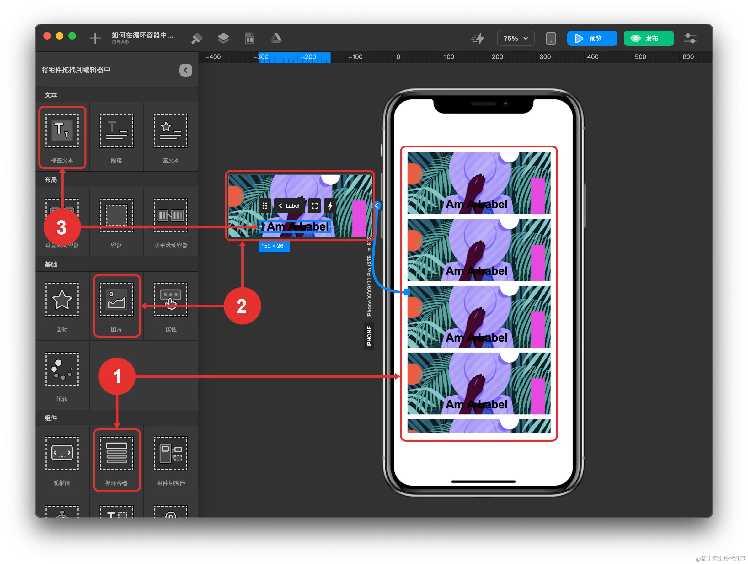 - 添加图片组件 ,拖拽到循环容器条目区域