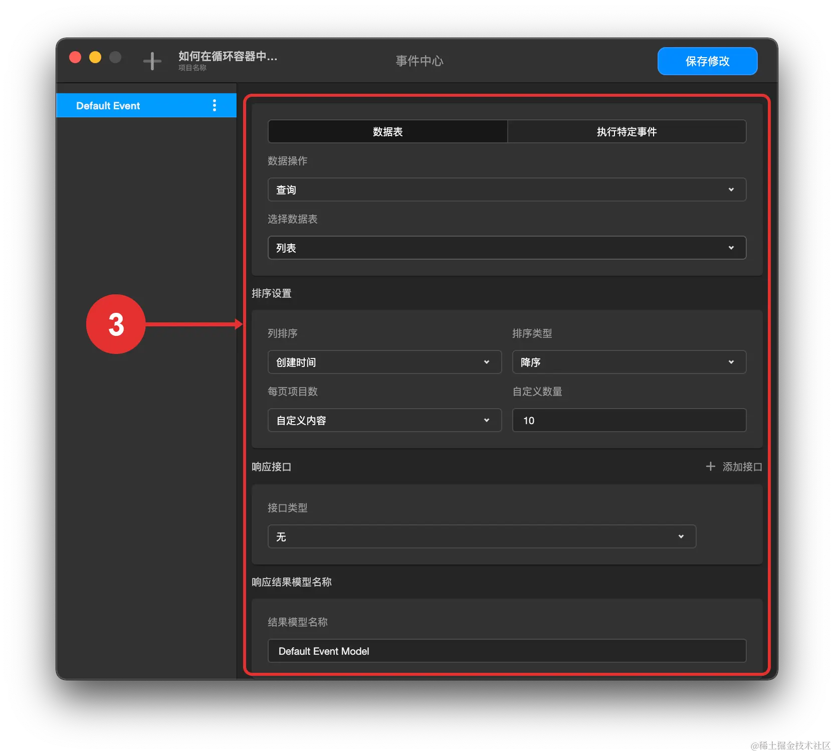 - 创建查询数据事件