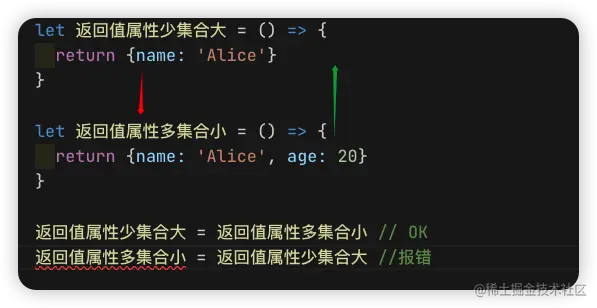 只要参数部分能够找到对应的位置就用**==绿色箭头==,否则为==红色箭头==**,当参数全为绿色箭头时,最左侧的箭头就为绿色,代表函数可以兼容