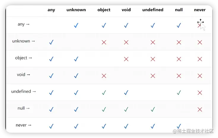 顶类型:unknown -- 任何类型都可以赋值给unknown