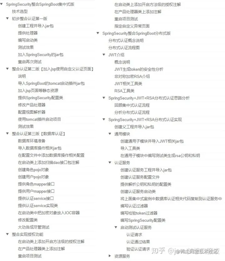 第三部分主要讲解SpringSecurity整合SpringBoot集中式版和分布式版,先来看看目录