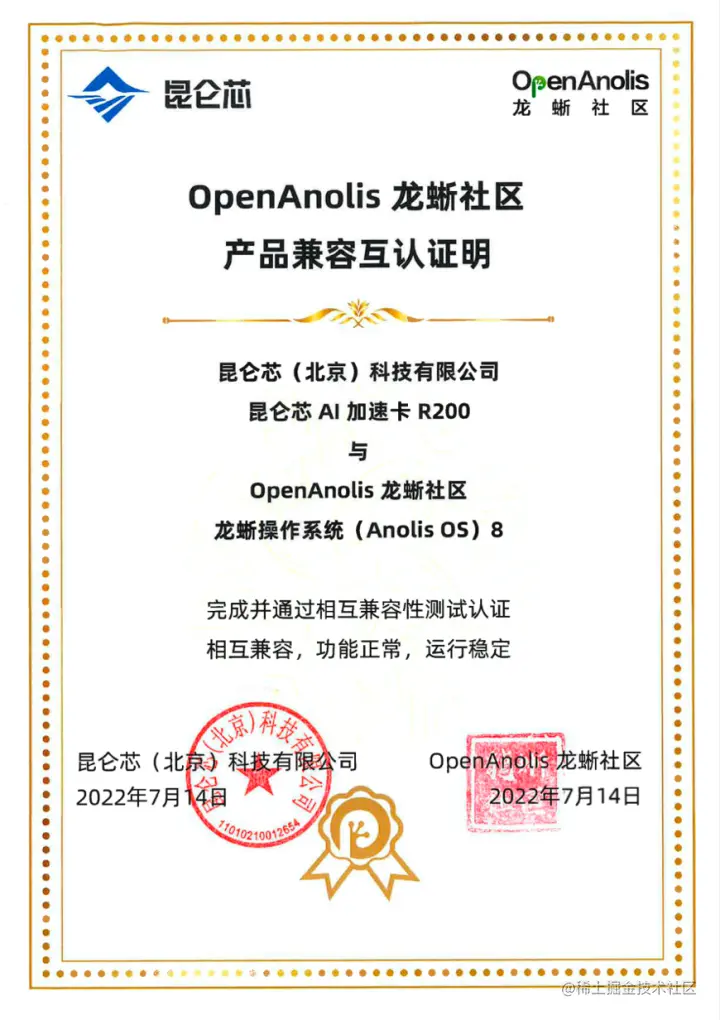 近日,昆仑芯 AI 加速卡 R200 与龙蜥操作系统(Anolis OS)完成相互兼容性测试认证,结果显示:相互兼容,功能正常,运行稳定。