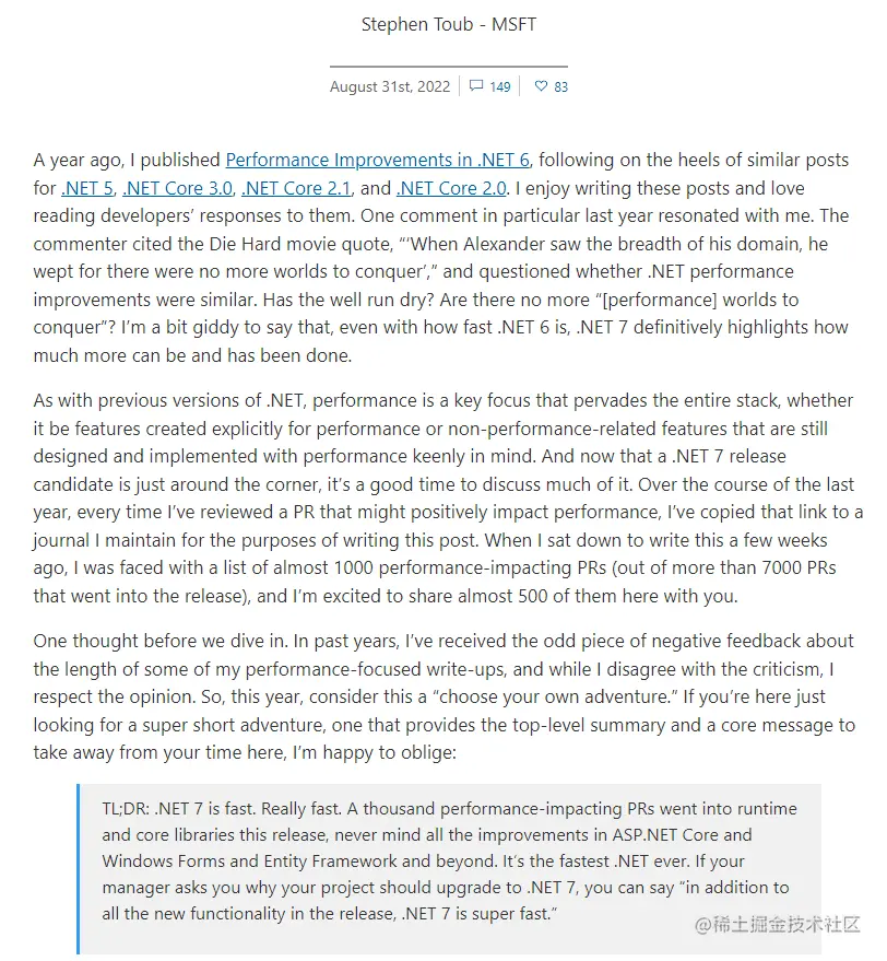 下面是摘抄的一些资料,希望能让小伙伴们更加容易了解到 .Net 7