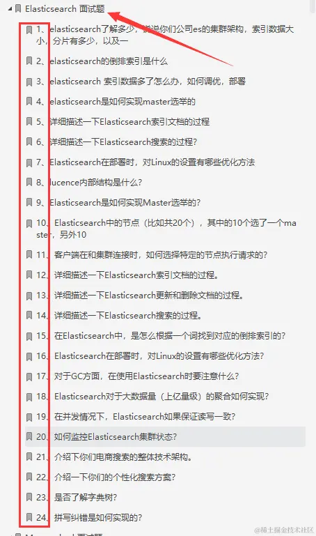 24道题,这一部分和下一部分可能面试的比较少,所以相关的面试题也相对少一些,但是有一道题很有意思,是让你介绍你们的电商搜索的整体技术架构。