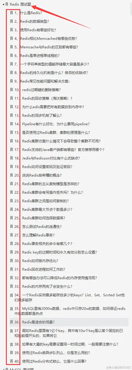 40道Redis面试题,Redis底层运行原理、分布式锁、缓存、限流、秒杀等等这些部分问的还是比较多的,也需要你自己有一个完整的调优思路才可以。