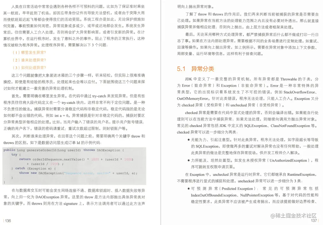 第5章首先归纳了系统中各类的异常,以及定义各种异常的处理方式,然后定义了日志使用规范,以达到监控运行状况,回溯异常等目的。