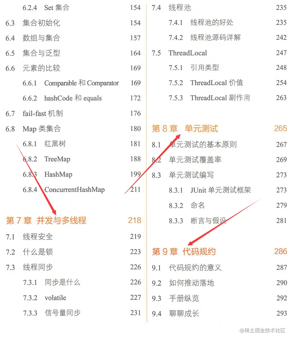 第7章也是重点章节,走进并发与多线程。由并发与并行等基础概念开始,引申到线程安全,介绍几种常见的锁实现,然后讲解线程同步方案,最后扩展到如何正确使用线程池,如何深度解析ThreadLocal的安全使用等。目的是让读者深入理解并且安全规范地实现并发编程,得心应手地处理好高并发多线程问题,提高生产效率。