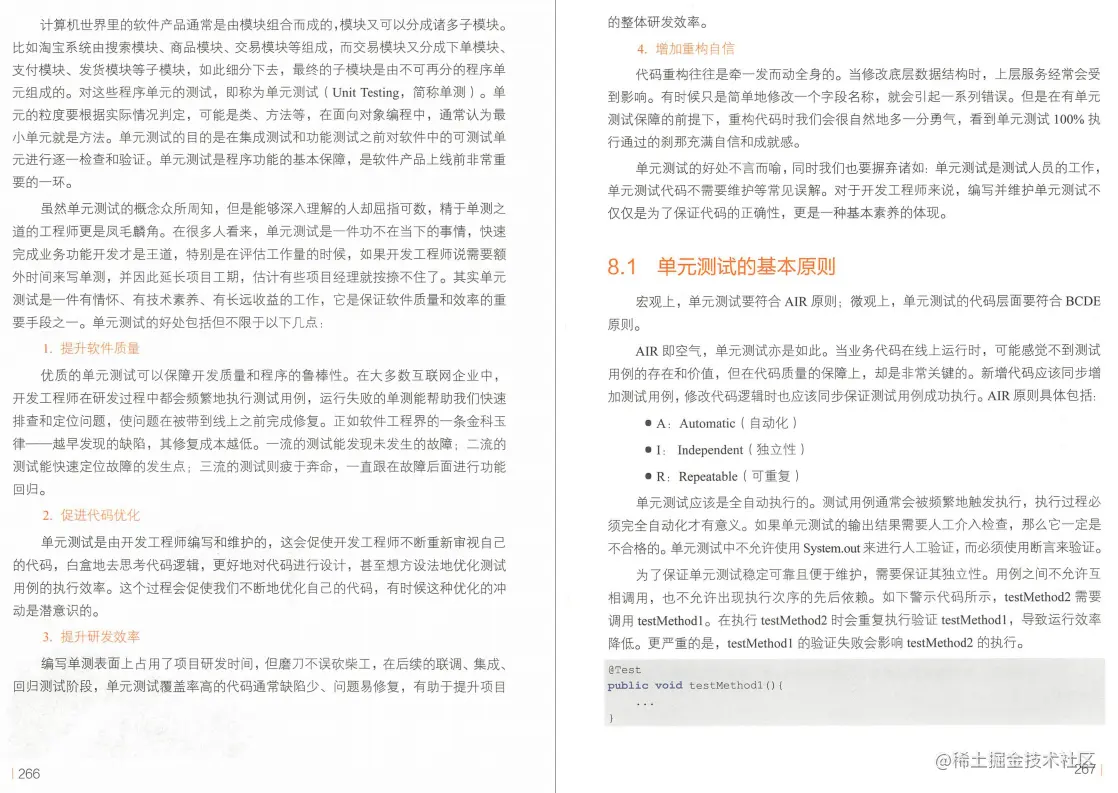 第8章分析了单元测试的重要意义、基本原则、开发规范和评判标准。单元测试的重要意义在于它是一件有情怀、有技术素养、有长期收益的工作,是保证软件质量和效率的重要手段之一。