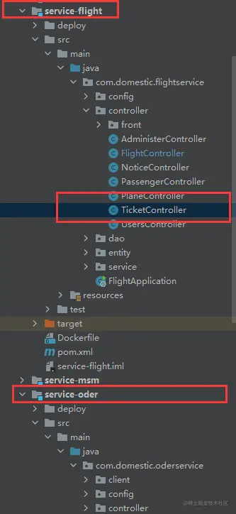 所以order订单接口和ticket机票接口分别放到不同的两个服务中去