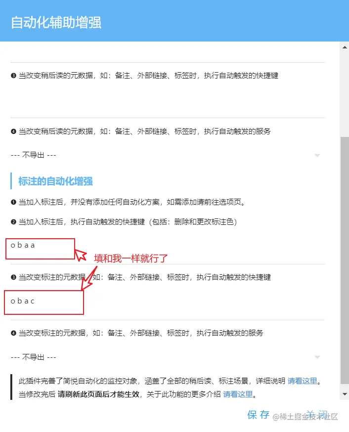 使按 ob 时只导出全文