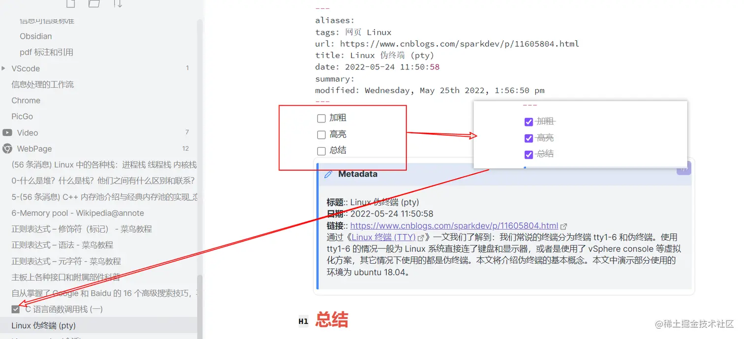 使用 Obsidian 做笔记时可以在学习过程中做到真正的有迹可循,也可以让知识点之间解耦,使知识点原子化,以强化知识点之间的联系。