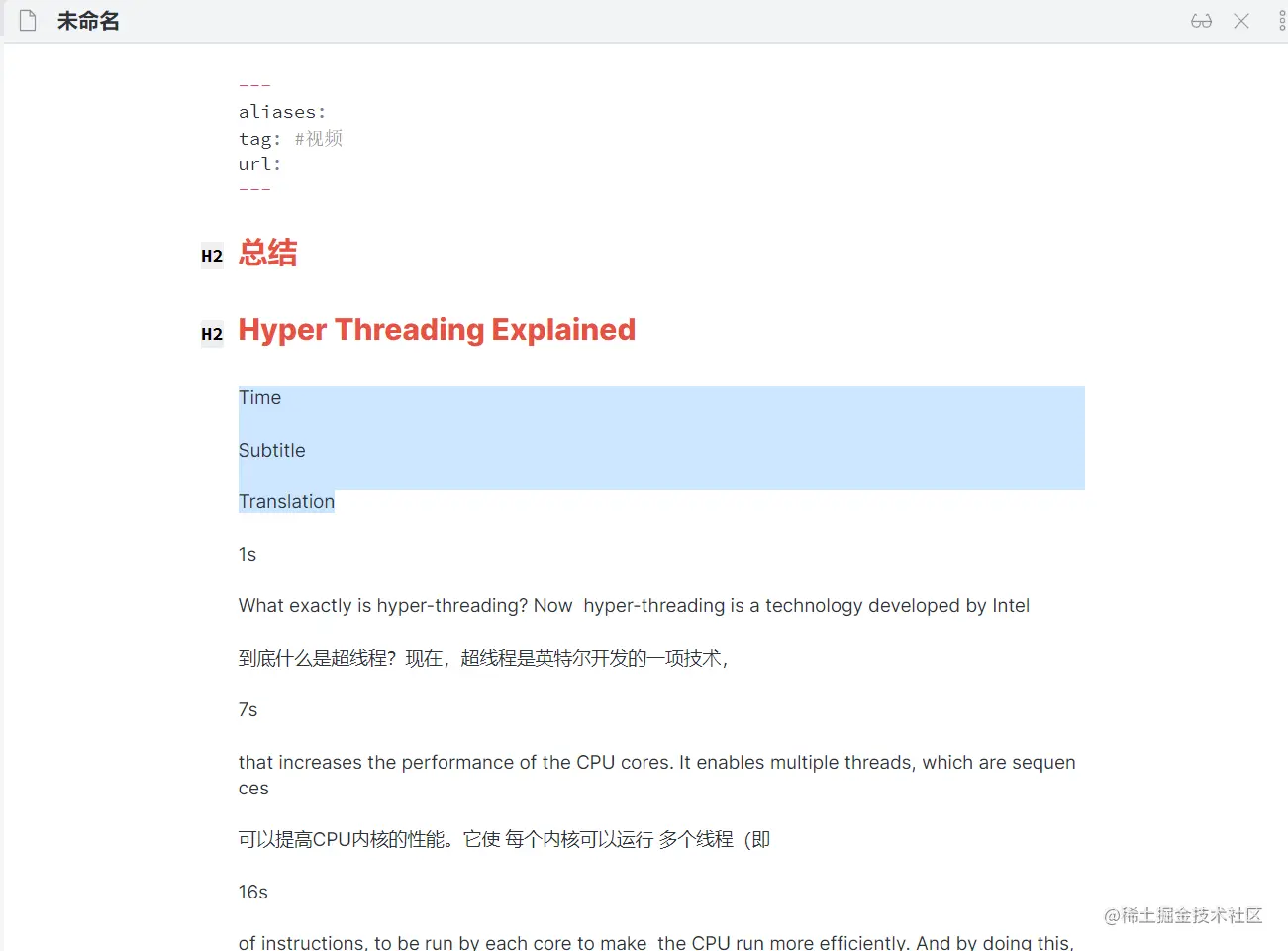 接着你就可以给这个视频的 markdwon 上做笔记了