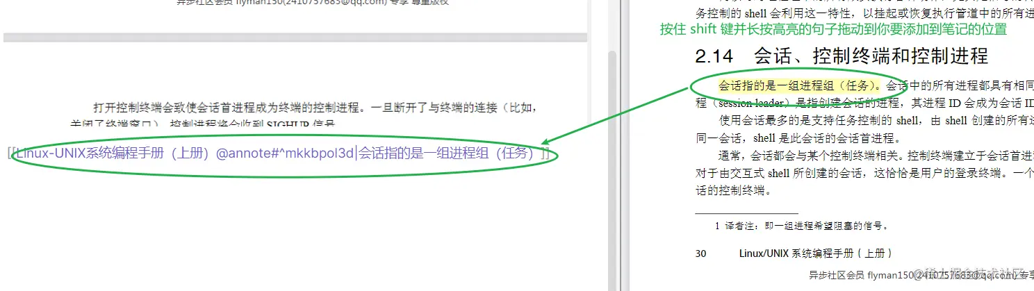 (对应痛点:在笔记中引用了某本书的一些话,过一段时间想回原文考究时却很难找到出处)