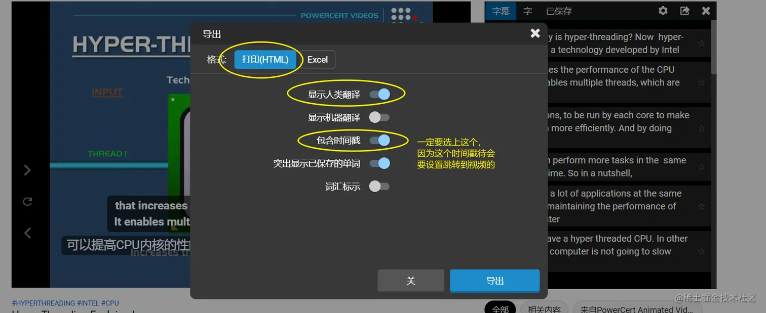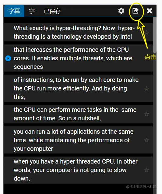 接着按 导出 就会弹出字幕的 html: