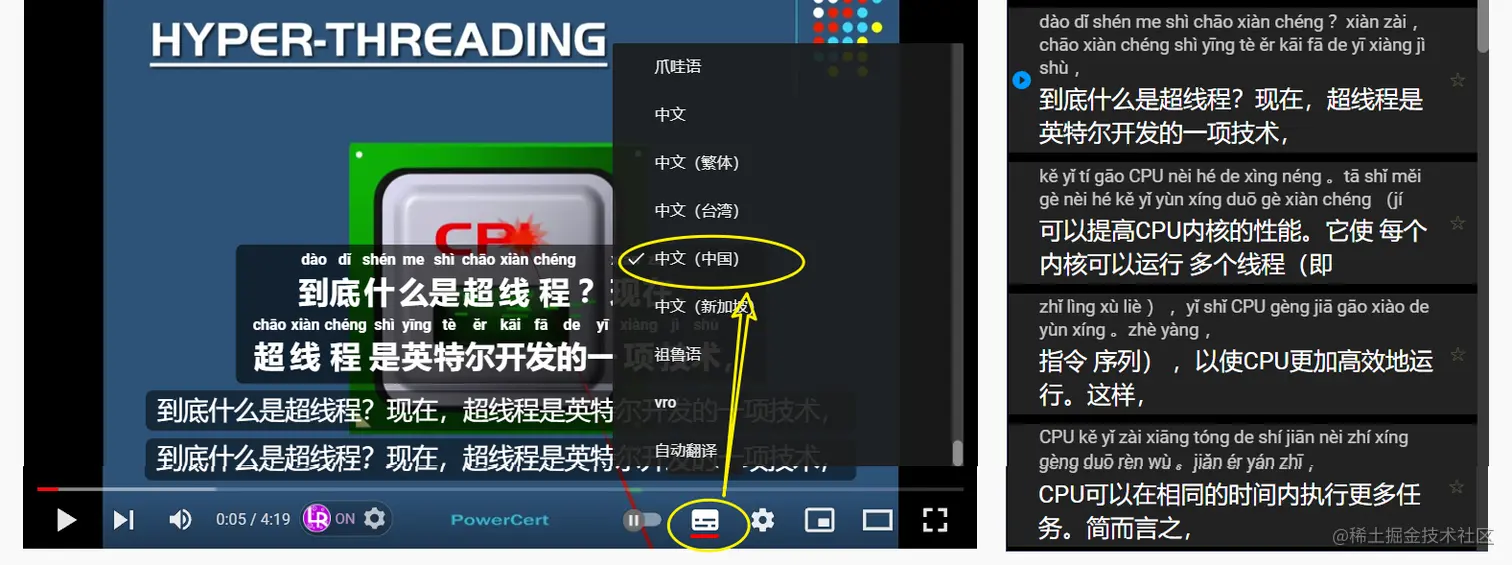 一开始打开某个视频可能默认是中文字幕,要改成英文的: