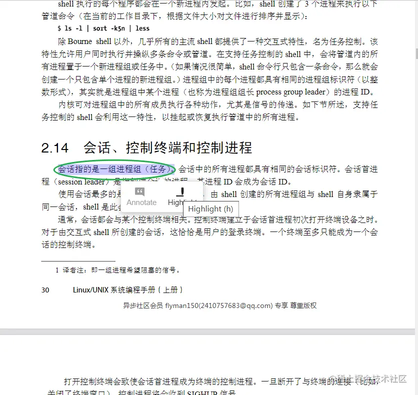 打开一个 pdf 文件,左键选中要标注的句子,然后会自动弹出 Hightlight 按钮并点击,就可以完成一个句子的标注