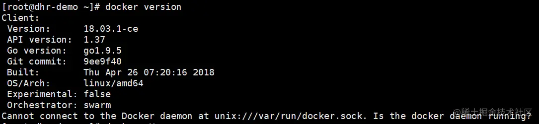 Docker分为Docker Client和Docker Server,在我们启动Docker之前,通过执行docker version命令只能看到Docker Client的信息,如下图: