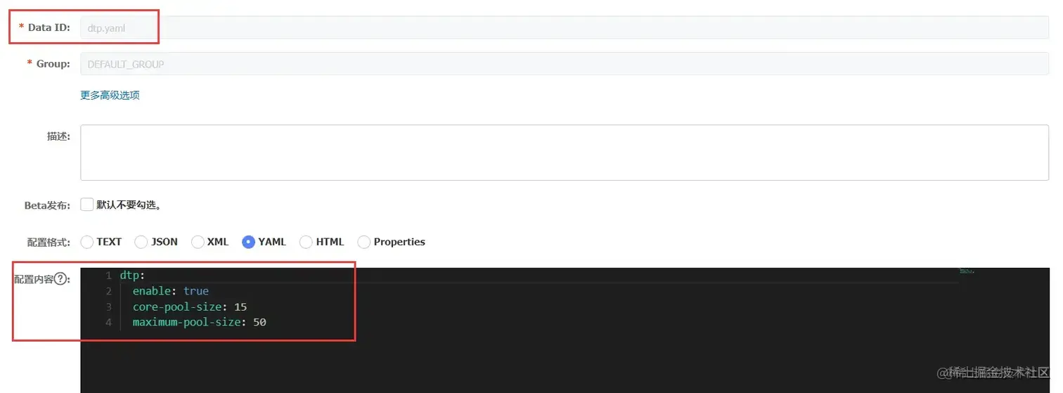我只是修改了core-pool-size,但是content是怎么dtp.yaml的内容,那么我们就来进行解析: