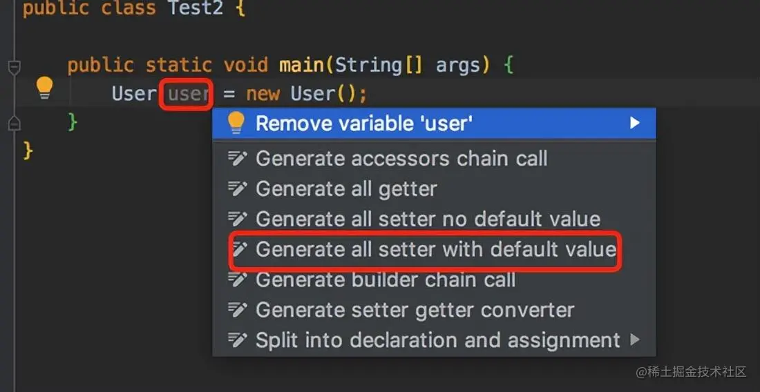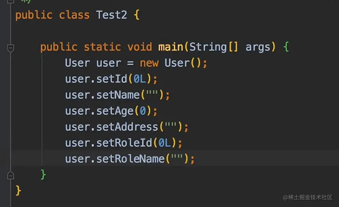 咋一看,代码还是挺多的。而且还有个问题,如果User类中的代码修改了,比如:age字段改成字符串类型,或者name字段名称修改了,是不是需要同步修改相关的成员变量、getter/setter方法、构造方法、equals、hashCode方法全都修改一遍?