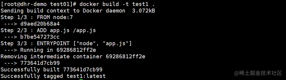 这个命令会告诉Docker基于当前目录下的Dockerfile文件来构建一个叫做test1的镜像。Docker会查找目录中的Dockerfile文件,然后基于文件中的指令构建镜像。