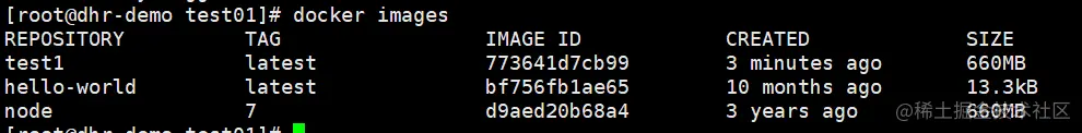 当完成镜像构建后,一个新的镜像就被存储到本地了。可以通过docker images命令列出所有本地的镜像: