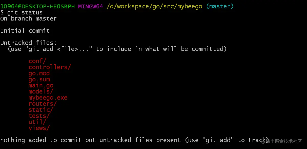 10964@DESKTOP-HE0SBPH MINGW64 /d/workspace/go/src/mybeego (master)