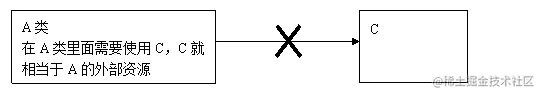 这么小小的一个改变其实是编程思想的一个大进步,这样就有效的分离了对象和它所需要的外部资源,使得它们松散耦合,有利于功能复用,更重要的是使得程序的整个体系结构变得非常灵活。