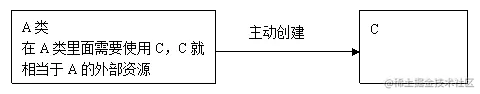 而是被动等待,等待IoC/DI的容器获取一个C的实例,然后反向的注入到A类中,如图所示: