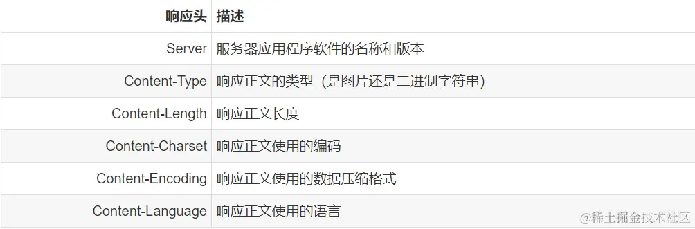 常见响应头: