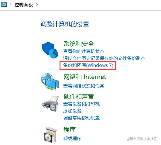 步骤2:查找到“系统与安全”下面的“备份与还原”选项,点击它。在还原这一栏里面点击“还原我的文件”。