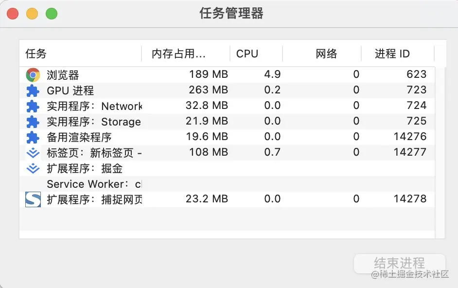 一张Chrome任务管理器的截图