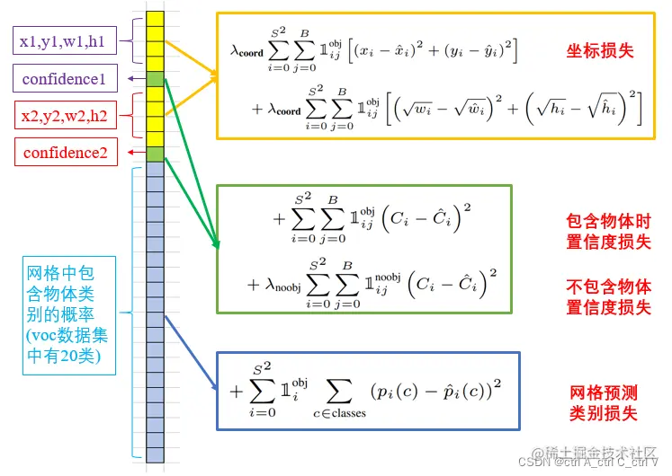 YOLOv1的损失函数为: