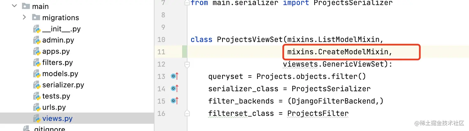 简单的新增接口同样使用DRF的提供的mixins,新增使用CreateModelMixin。