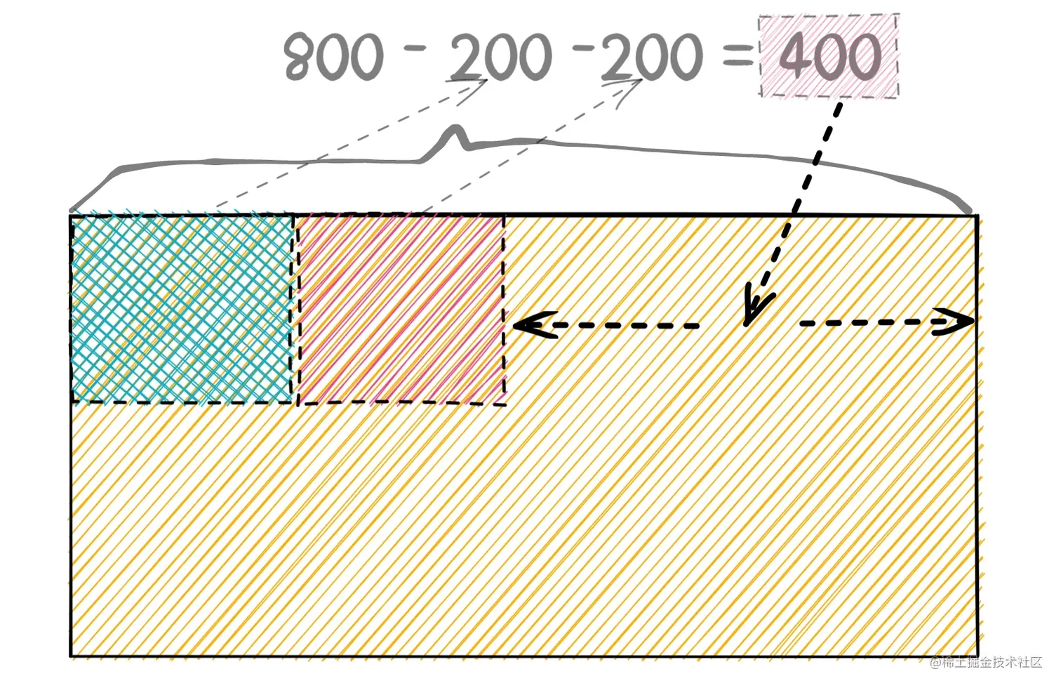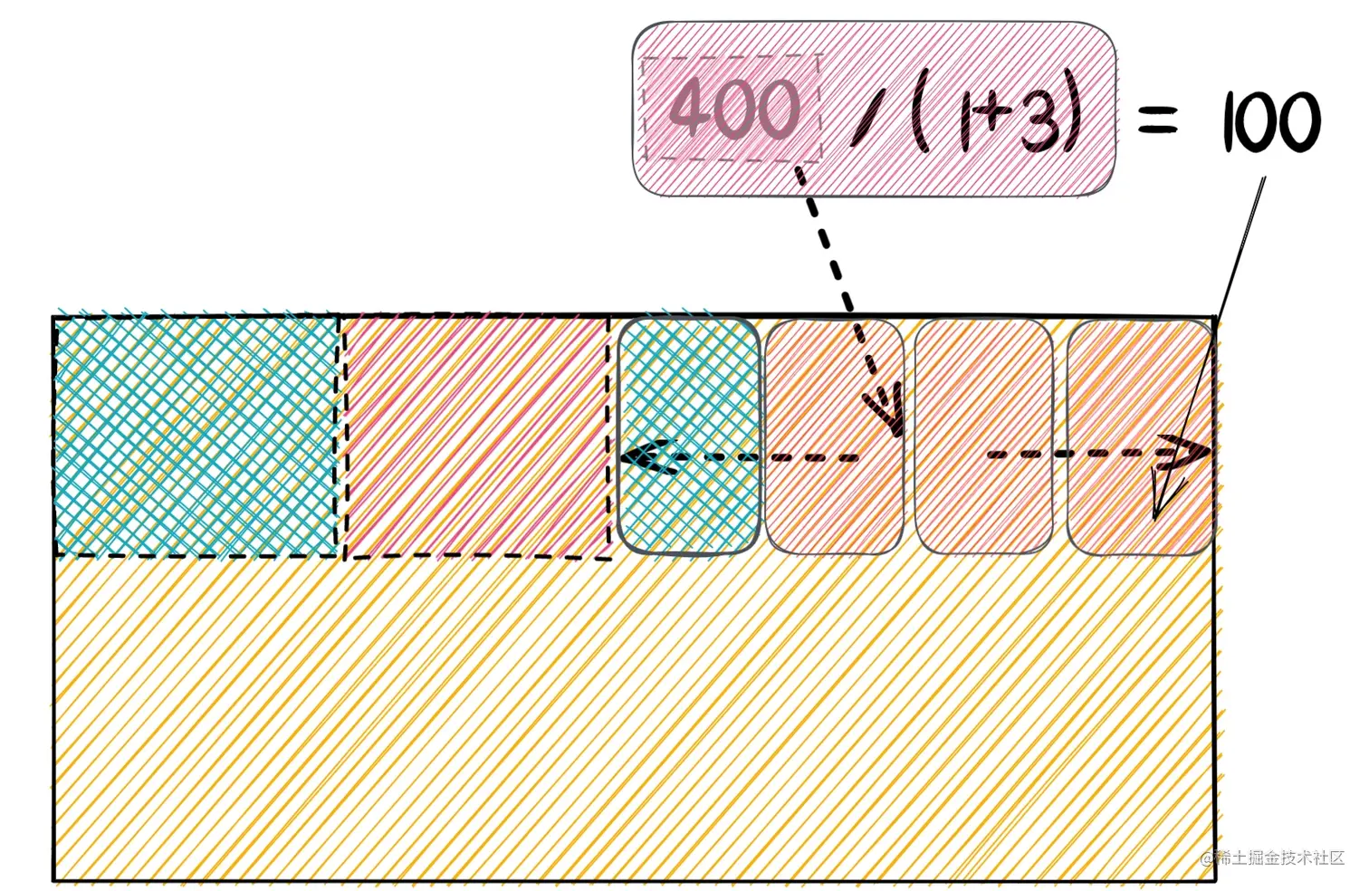 该值根据 flex-grow 之和计算每一份的尺寸:400/(1+3) = 100