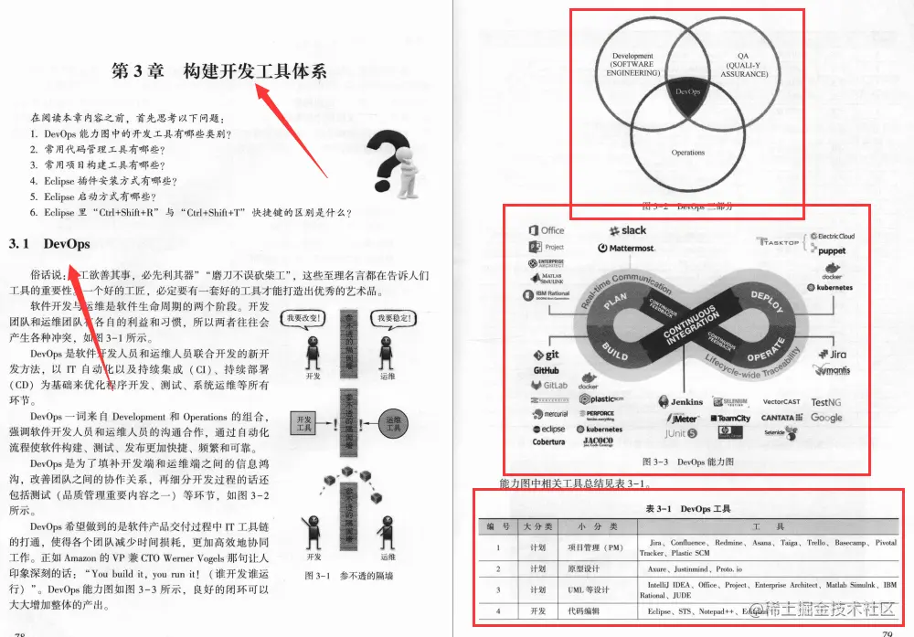 **第3章,**DevOps小节介绍了软件生命周期中各个环节的工具生态圈,虽没必要掌握所有工具的使用方法,但是对各个领域的常用工具必须有所了解。对于重要的常用工具,不仅要学会使用,还需要学会优化。3.4节以Eclipse 为例介绍了优化过程,其他工具亦需要融会贯通。