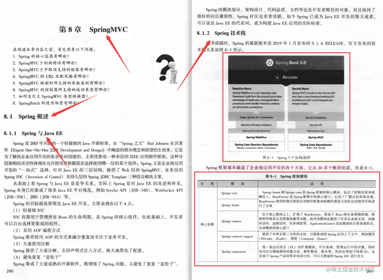 **第7章介绍了SpringMVC 最为核心的相关技术,**其他如入参类型转换( InitBinder)、输人数据验证、文件上传、拦截器、国际化、静态资源处理、主题与Tiles集成等相关内容,感兴趣的读者朋友可以查阅官网相关资料。另外,一个庞大的综合Java EE系统,还包括相关批处理程序,因此本章也介绍了常用的SpringBatch技术,读者朋友可以根据实际项目的需求来灵活运用。