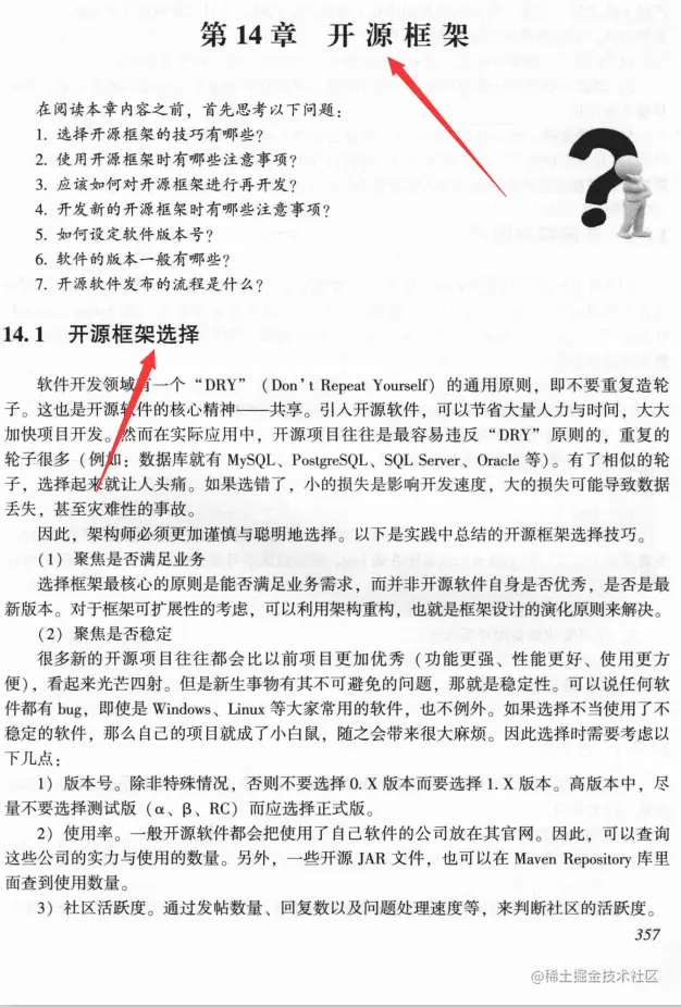 **第14章介绍了开源框架的选择、使用、开发以及发布中的必备技术。**能够开发开源软件以及具有开源、知识共享思维与境界,是一名优秀架构师必备的素养。当自已开发的软件在全球成功发布并被更多人利用时,这种成就感与心中的喜悦是无可比拟的。