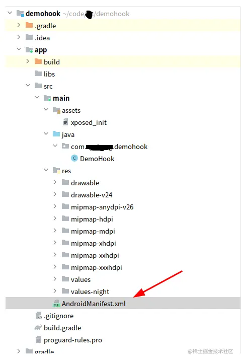 配置完AndroidManifest.xml后,我们就可以开始编写Xposed Hook模块了。具体如图: