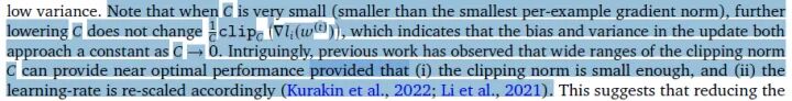 - 在多个任务上取得SOTA的超参数是一致的,都是clipping threshold要设置的足够小,并且learning rate需要大一些(此前所有文章都是一个任务调一个clipping threshold 费时费力,并没有出现过像这篇这样一个clipping threshold=0.1 贯穿所有任务表现还这么好)